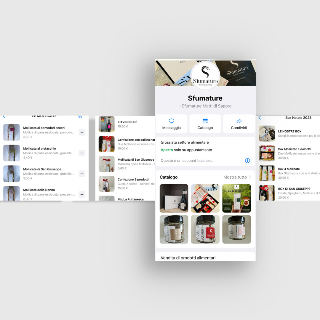 Su WhatsApp trovate un catalogo sempre aggiornato dove potete vedere tutti i prodotti disponibili e le proposte di box per ogni occasione! Potete contattarci tramite il pulsante “Contatta l’azienda” per ogni dubbio o info aggiuntiva.